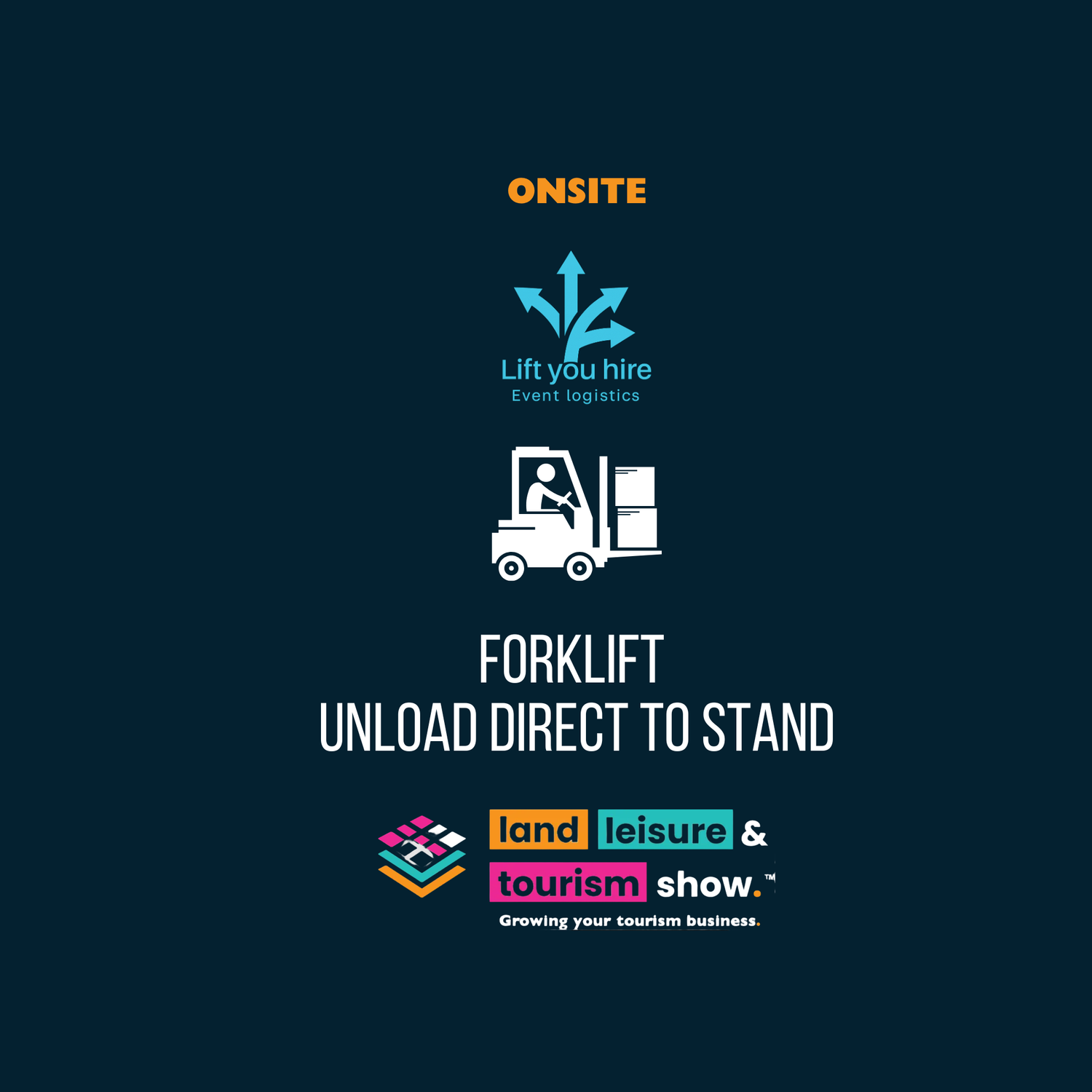 Forklift unloading direct from your vehicle to your exhibition stand with a standard 3T FLT.